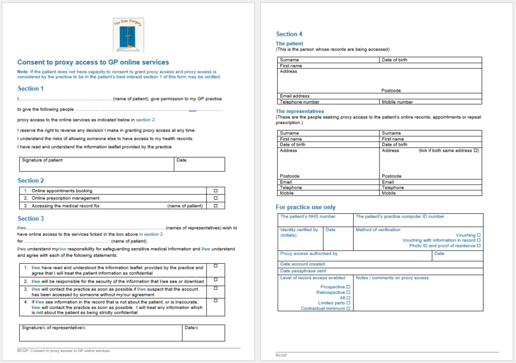 Proxy Access allows a patient to grant another person access to their online records. This could be a family member, carer, or next of kin. For further information on Proxy Access, please click here.